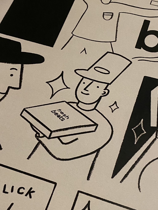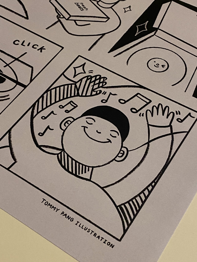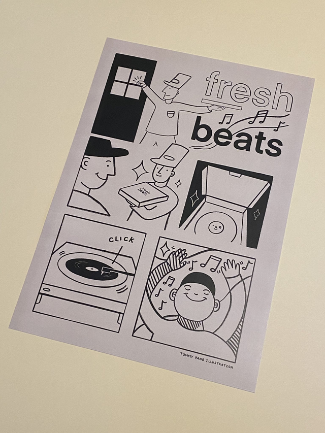 A3 Print - Fresh Beats - Mono by Tommy Pang Illustration.